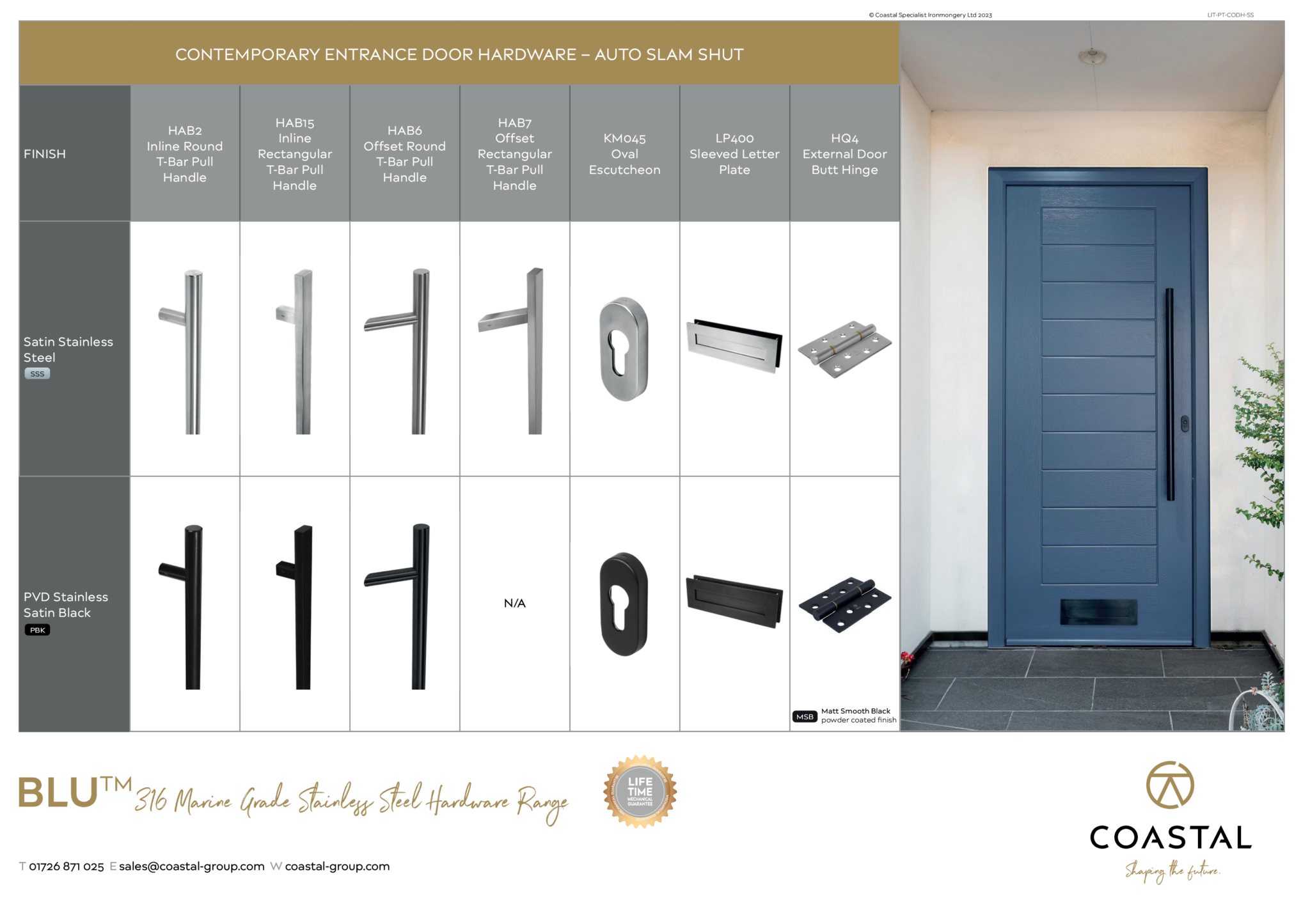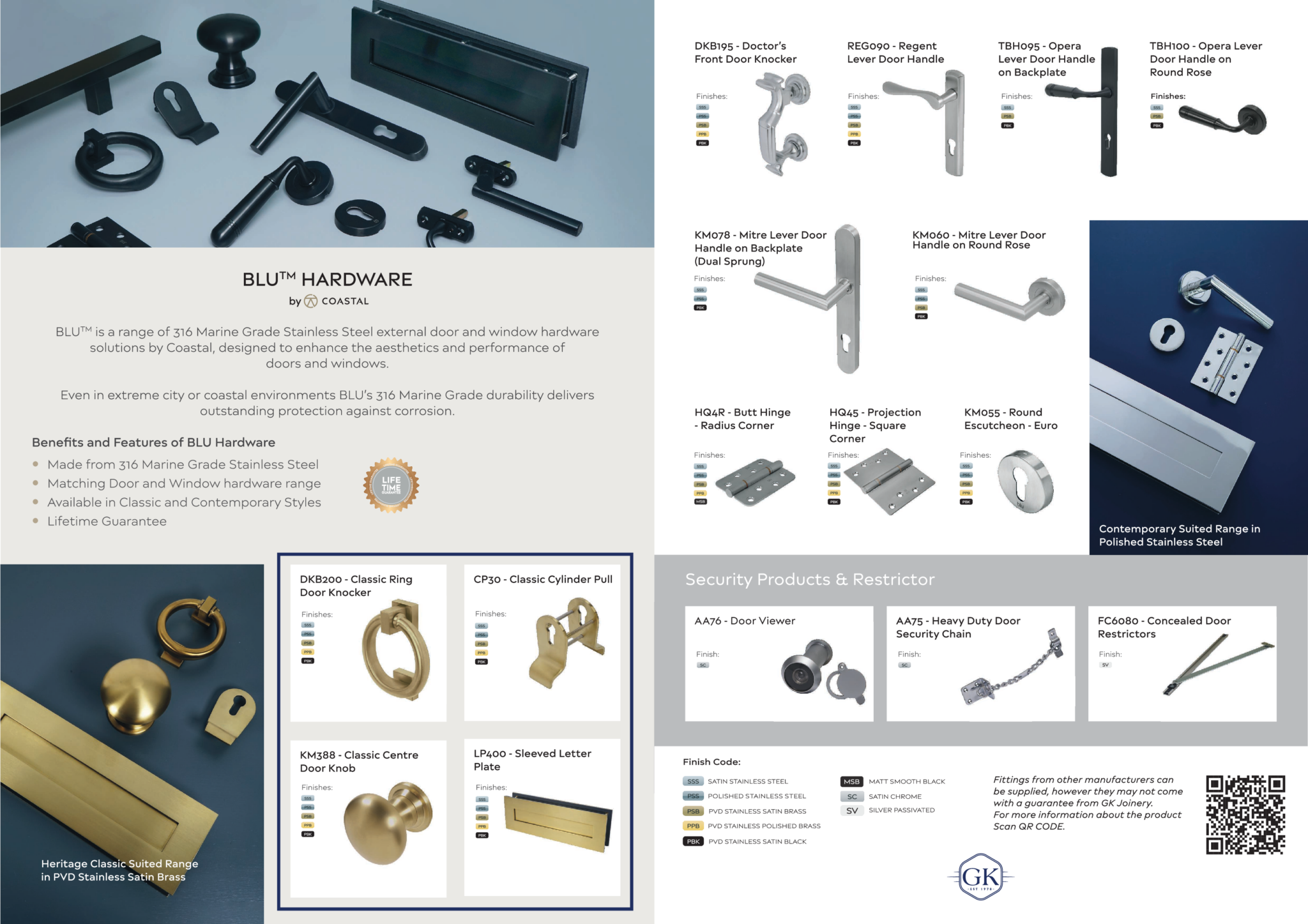 BLU™ is a range of 316 Marine Grade Stainless Steel external door and window hardware solutions by Coastal, designed to enhance the aesthetics and performance of doors and windows. Even in extreme city or coastal environments BLU's 316 Marine Grade durability delivers outstanding protection against corrosion.