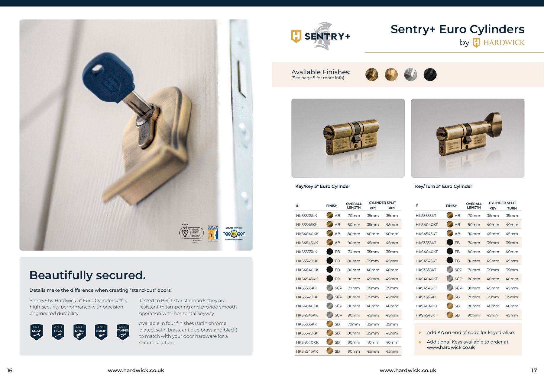 All locks are fitted with 3-star euro cylinders in a satin steel or satin brass finish.